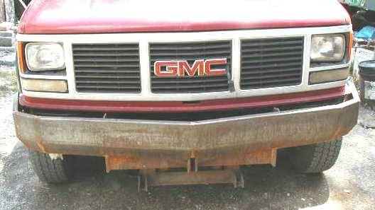 Alan fabricated his own mount for a Sno Way plow, and took it a step further, and also made his own heavy duty front bumper. The truck is a single rear wheel 1988 Chevy K3500. All of the descriptions below are in his own words.