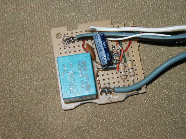 Here's the part that does the work. The blue cube is a 10 amp relay that feeds