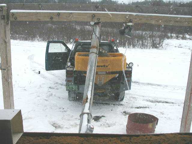 Back the truck up to the hopper and let the salt run out through the coal chutes