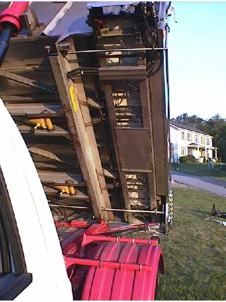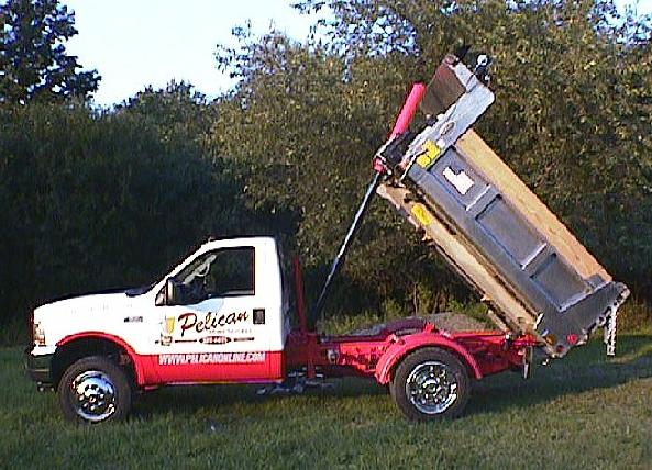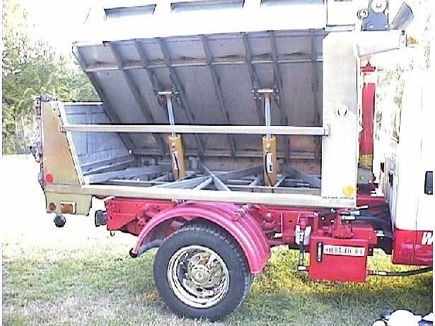 "Side dump mechanism, hydraulic tank, valves on top of tank"